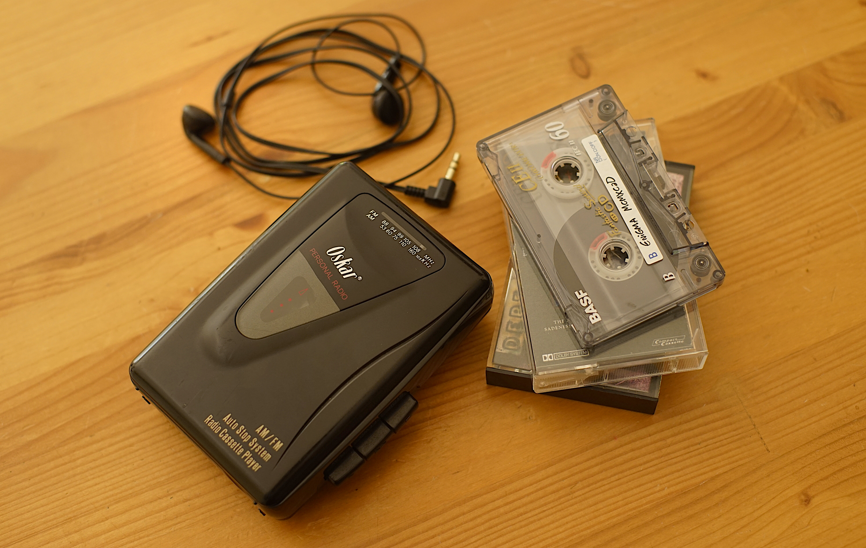 Es un walkman muy básico: Radio AM/FM (stereo) y reproducción de cintas en mono. Auto stop y solo avanza en dirección a play (no puedes rebobinar hacia atrás). De todos los walkmans que tenía por casa éste es el que menos me importaba perder y ahora es el único que ha sobrevivido… Como digo, la calidad de sonido escuchando las cintas es mono. En su momento no me pareció grabe porque cuando no tienes nada más, te vale. Solamente la radio es en stereo. Ahora casi no lo uso prefiero el Sony… jajaja!
